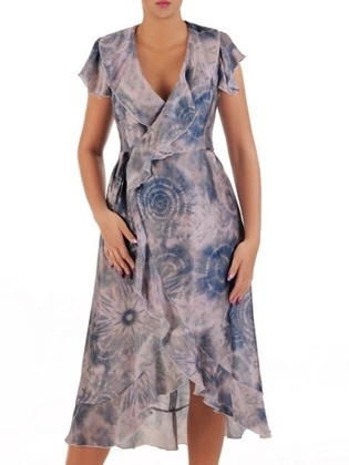 Kopertowa sukienka z modnymi falbanami, wizytowa kreacja na sezon letni 21714