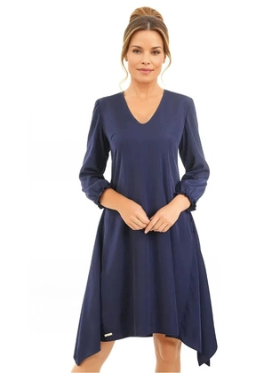 Asymetryczna sukienka z modnym wykończeniem rękawów 31427