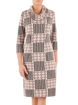 Sukienka damska z kominem, jesienna kreacja w pepitkę 36565