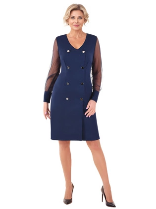 Dwurzędowa sukienka z tiulowymi rękawami 17882.