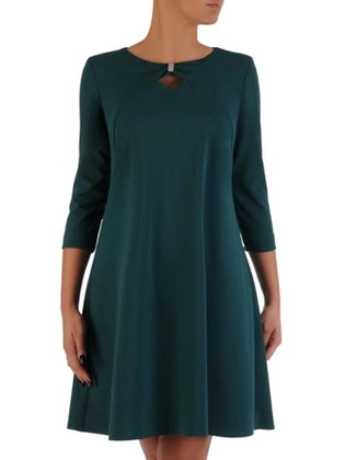 Trapezowa sukienka z modnymi rękawami 18311, zielona kreacja wizytowa.