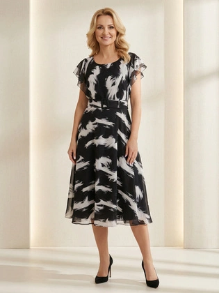 Sukienka na wesele, zwiewna kreacja z szyfonu, duże rozmiary 37892