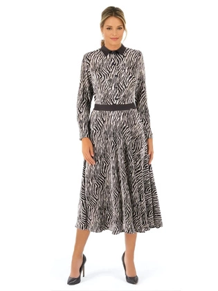 Sukienka wizytowa, rozkloszowana sukienka maxi w modny zwierzęcy wzór, 39232
