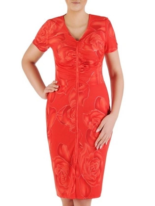 Sukienka damska 18595, czerwona kreacja w kopertowym fasonie.