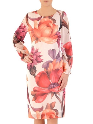 Elegancka sukienka w kwiaty z ozdobnie wyciętymi rękawami 33506