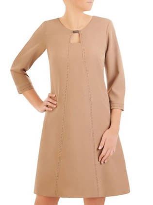 Trapezowa sukienka z ozdobnym dekoltem i przeszyciami 31243