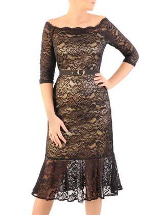 Wieczorowa sukienka z paskiem, kreacja z koronkowymi wstawkami 31892
