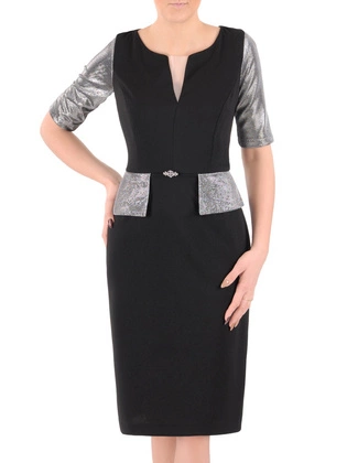 Wizytowa sukienka damska z połyskującą baskinką 37475