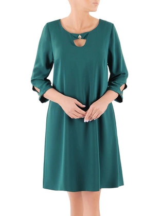 Elegancka zielona sukienka midi, wizytowa kreacja z ozdobnymi detalami 38586
