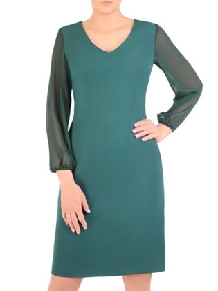 Zielona sukienka z modnymi, wyszczuplającymi zakładkami 24577