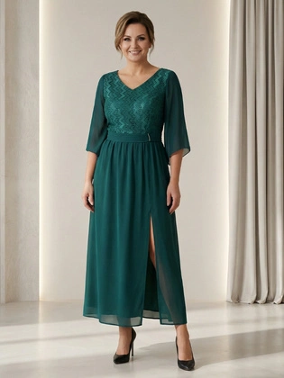 Elegancka sukienka na wesele butelkowa zieleń – koronkowa kreacja maxi dla mamy 38764