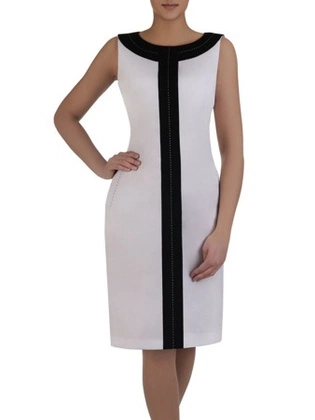 Sukienka koktajlowa, wyszczuplająca kreacja z łączonych tkanin 34125