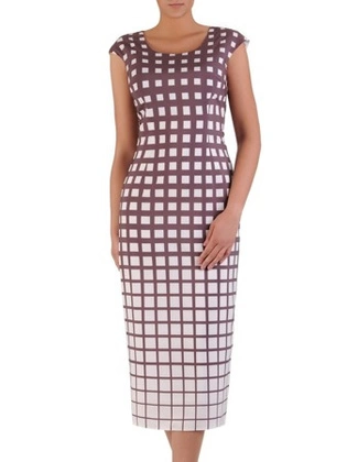 Sukienka wizytowa, prosta kreacja w geometrycznym wzorze 26303