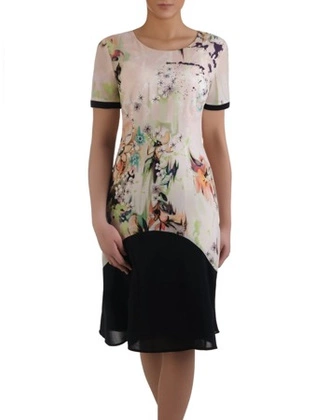 Sukienka z czarną wstawką Malika I, oryginalna kreacja z szyfonu.