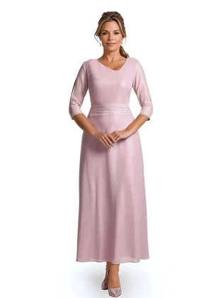 Modna sukienka koktajlowa z dzianiny w kolorze brudnego różu – midi z kieszeniami i dekoltem V, idealna na przyjęcia 40706