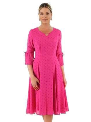 Sukienka na wesele plus size, rozkloszowana kreacja z szyfonu w groszki 38524