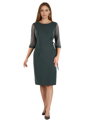 Dzianinowa sukienka z ozdobnym wiązaniem i tiulowymi rękawami 24417