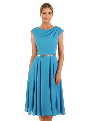 Turkusowa sukienka z szyfonowymi rękawami 30032