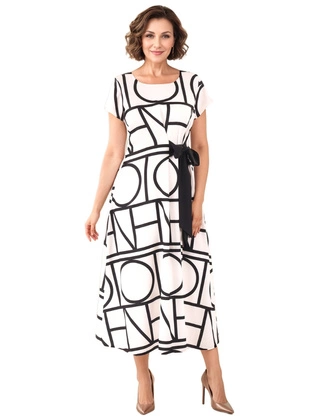 Trapezowa sukienka damska, wiosenna kreacja w oryginalny wzór 35565