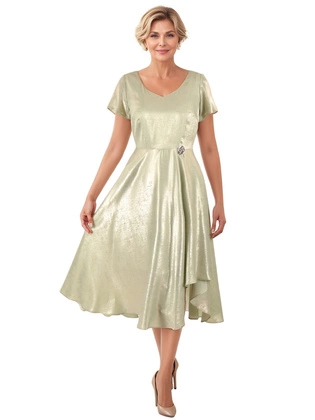 Elegancka zielona sukienka midi, wizytowa kreacja z ozdobnymi detalami 38586