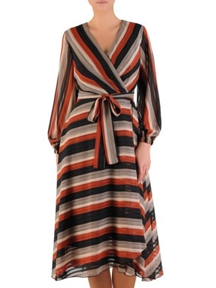 Kopertowa sukienka z szyfonu, rozkloszowana kreacja z paskiem 32000