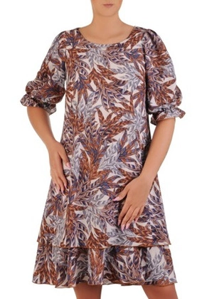 Sukienka w kwiaty, luźna kreacja z falbanami 26364