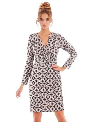 Elegancka sukienka w odcieniach beżu z wyszczuplającymi detalami 38673
