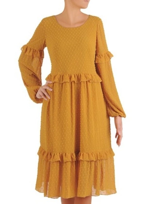 Elegancka sukienka midi z falbanami 35290