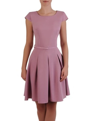 Sukienka w modne fałdy 16686, wrzosowa kreacja z paskiem