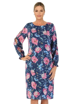 Elegancka sukienka w kwiaty z ozdobnie wyciętymi rękawami 33505