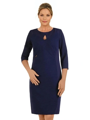 Dwuczęściowy komplet wizytowy 18381, granatowa sukienka z krótkim bolerkiem.