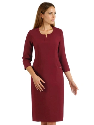 Kostium damski, bordowa sukienka z koronkowym żakietem 21808.