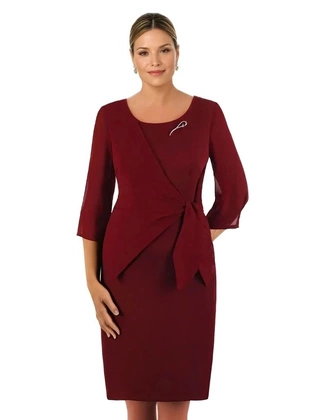 Bordowa sukienka z ozdobnym, wyszczuplającym wiązaniem 21979