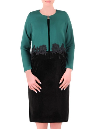 Elegancki komplet damski, zielony żakiet z czarną sukienką 35007