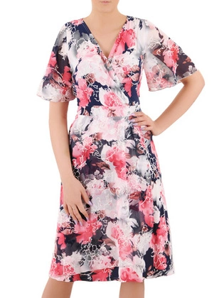 Letnia sukienka w kwiaty z zakładką i kopertowym dekoltem 35958