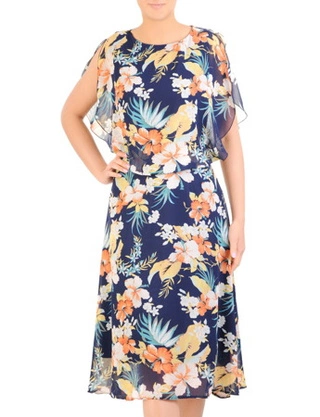 Luźna sukienka w kwiaty, kreacja ze zbluzowaną górą 32813
