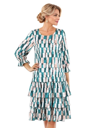 Elegancka sukienka w geometryczny wzór, kreacja z falbanami 37486