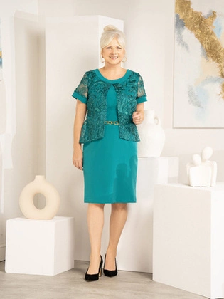 Elegancka sukienka damska z imitacją koronkowego żakietu 32922