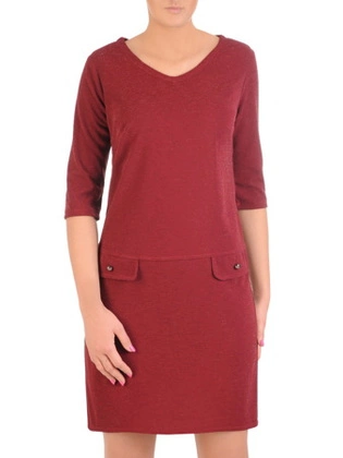 Bordowa sukienka z dzianiny z ozdobną klamrą 37413
