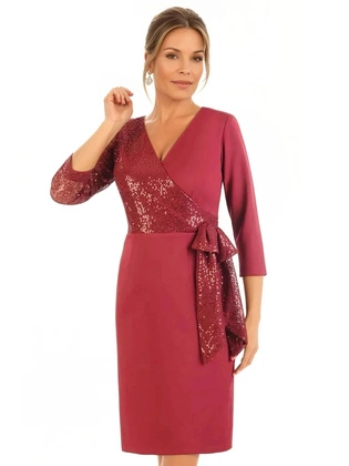 Bordowa sukienka z ozdobną zakładką pod biustem 34268