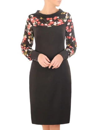 Wizytowa sukienka z ozdobnym karczkiem i rękawami 31657