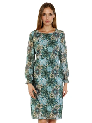 Elegancka sukienka w kwiaty z ozdobnie wyciętymi rękawami 33504