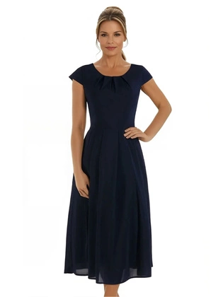 Szyfonowa suknia Aurelia V, granatowa kreacja z rozkloszowanym dołem.