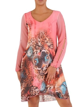 Szyfonowa sukienka z połyskującą listwą, kreacja w modnym fasonie 22959