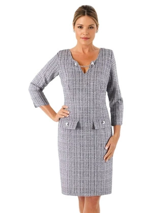 Sukienka damska plus size w kratkę z ozdobnymi detalami 38608