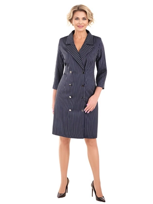 Sukienka damska 17814, dwurzędowa kreacja w paski.