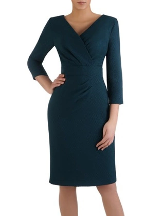 Sukienka kopertowa Sławomira III, dzianinowa kreacja z wyszczuplającymi marszczeniami.