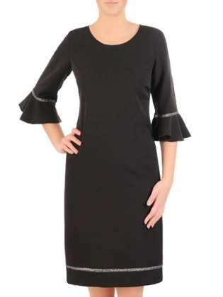 Prosta sukienka z tkaniny z ozdobnymi tasiemkami i rękawami 31830