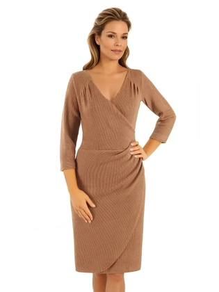 Sukienka wyszczuplająca z prążkowanej dzianiny, kopertowa sukienka z ozdobnymi marszczeniami 38802