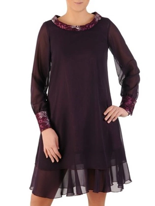 Trapezowa sukienka z szyfonu, kreacja z ozdobnymi mankietami 24279